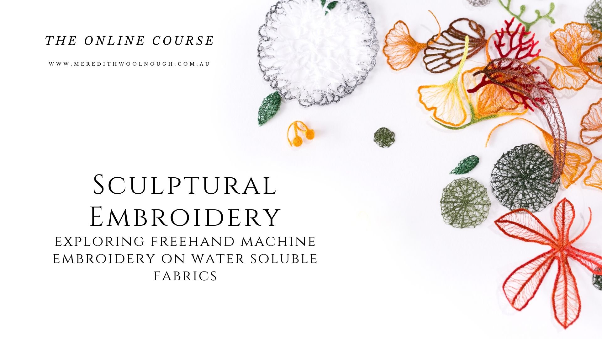 The SCULPTURAL EMBROIDERY online course is where I share all that I know and love about freehand machine embroidery on water soluble fabric. All my tips, tricks and techniques in one place.